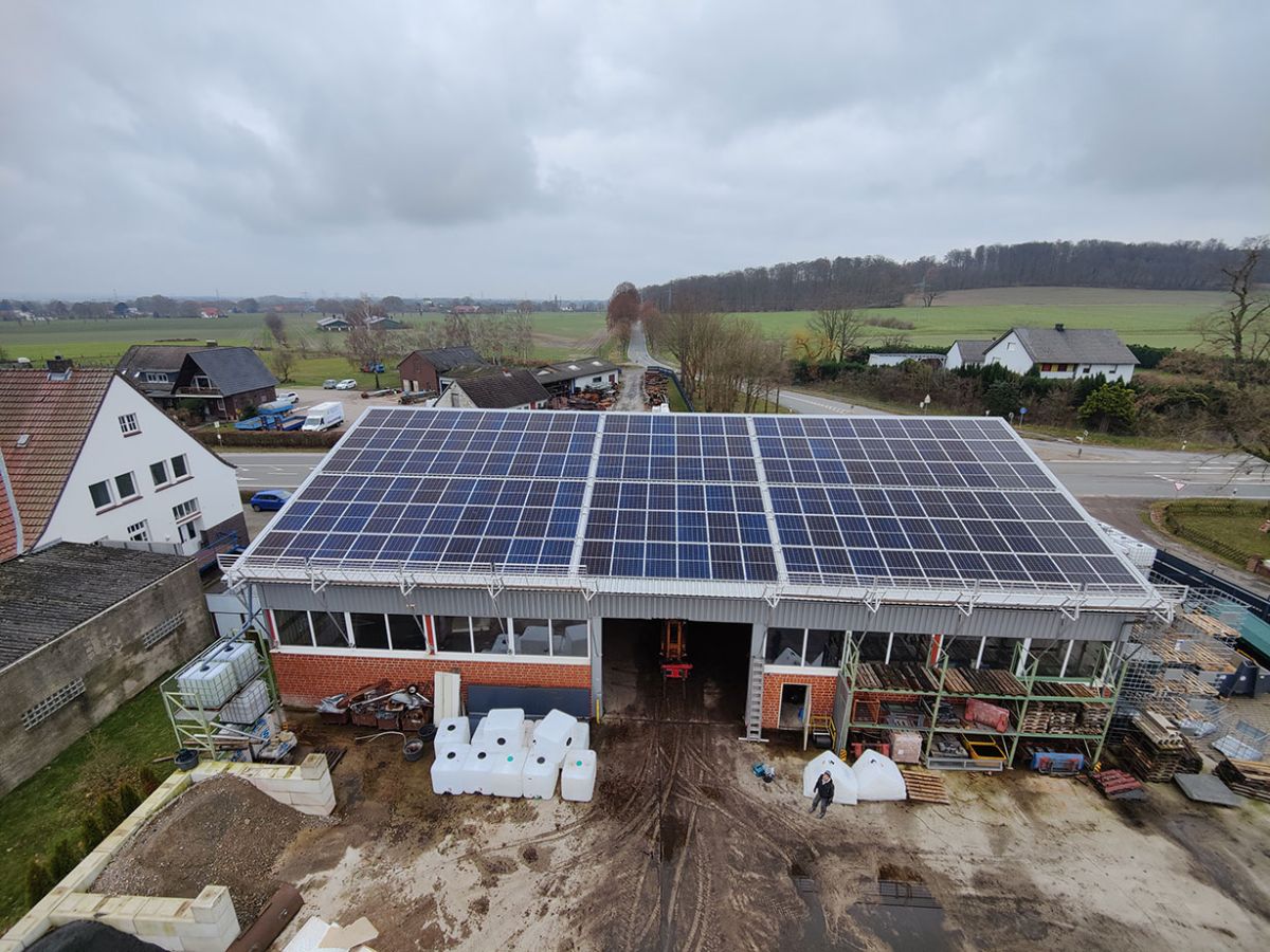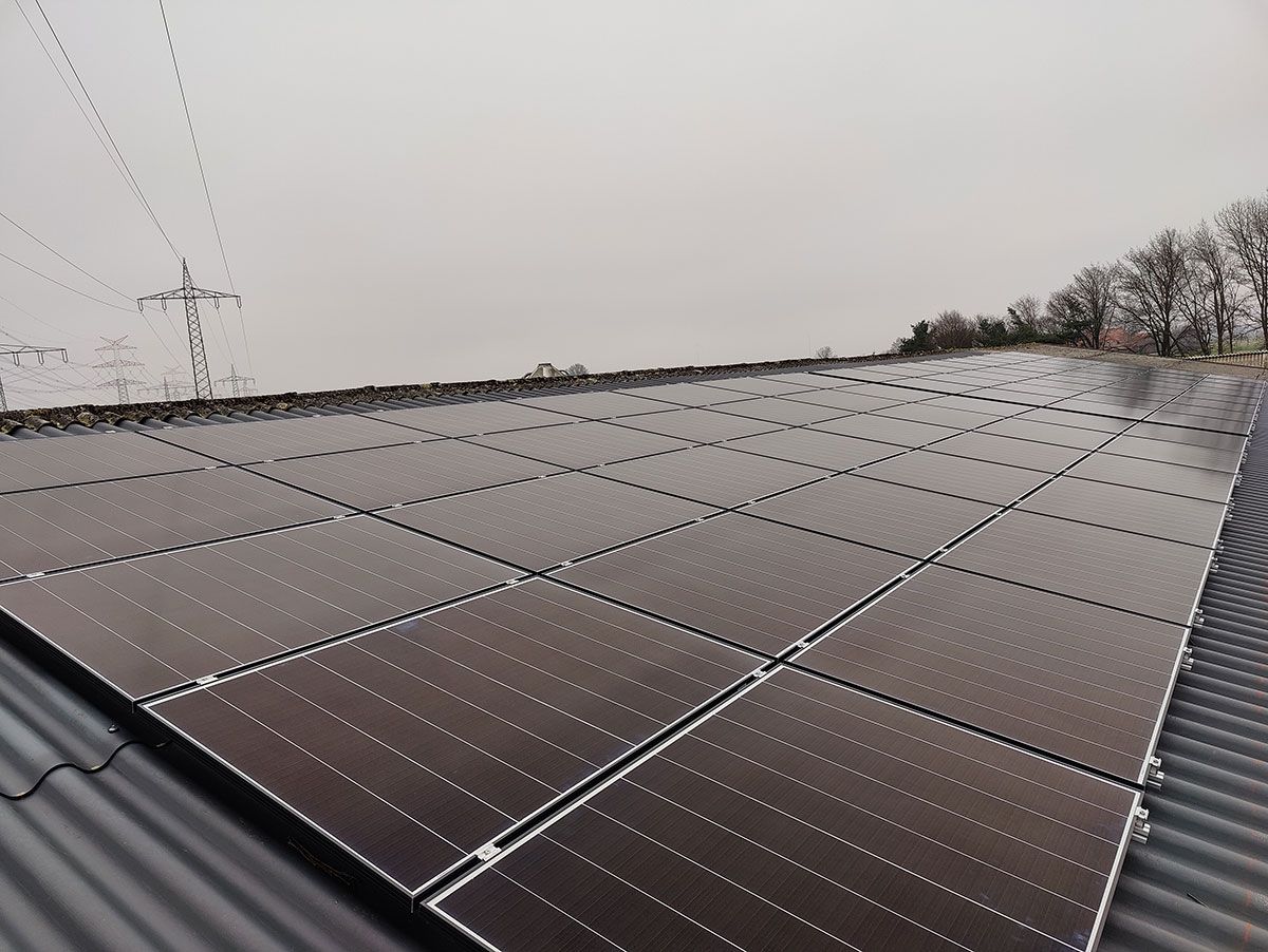 Die Anlage wurde auf einem Trapezblechdach einer Lagerhalle für Stroh montiert.