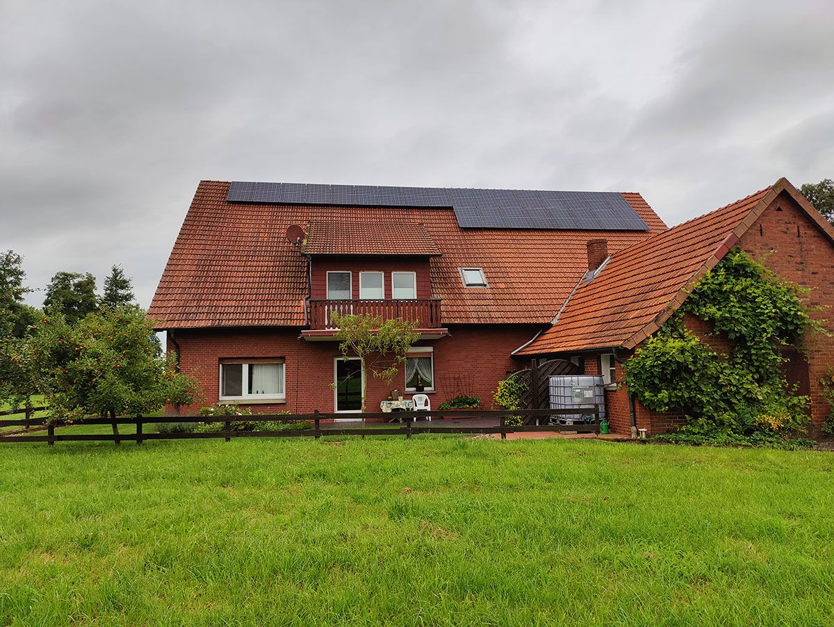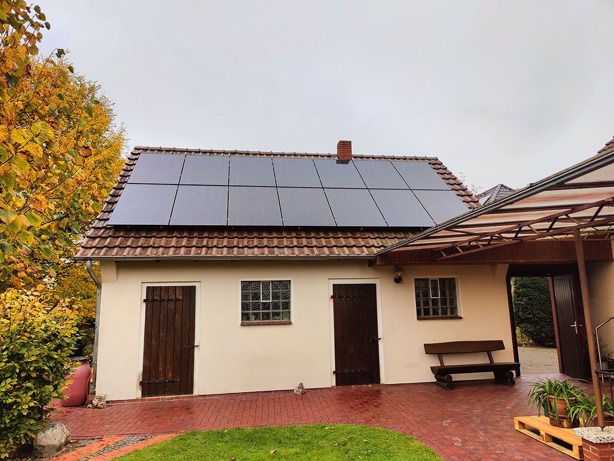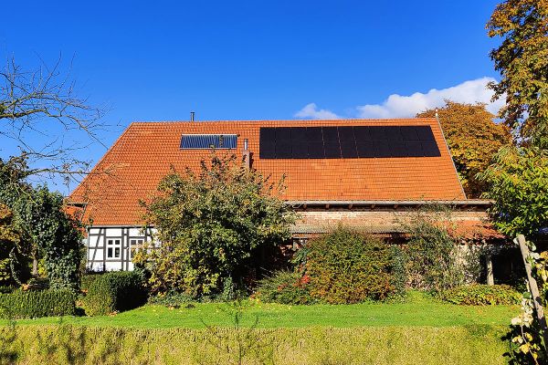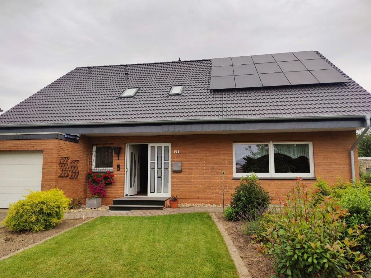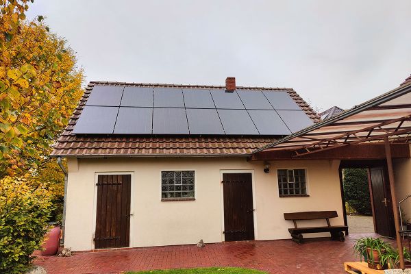 Die Anlage ist auf zwei Dachflächen nach Süden (12 Module, 5,28 kWp) und Westen (12 Module, 5,28 kWp) ausgerichtet.