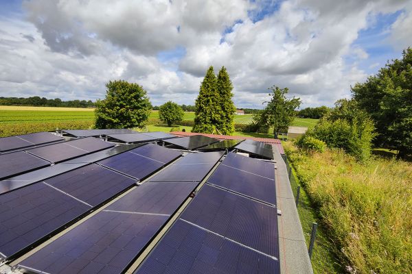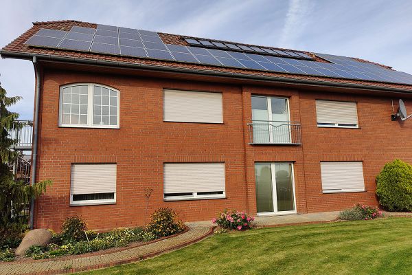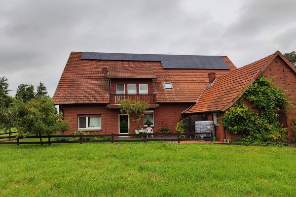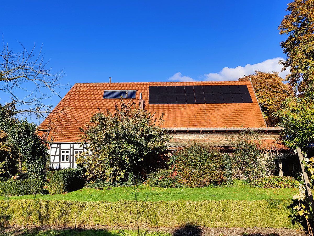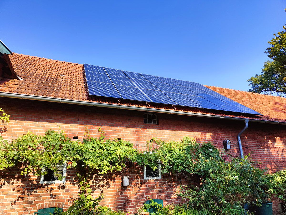 Die Anlage ist auf zwei Dachflächen nach Süden (12 Module, 5,28 kWp) und Westen (12 Module, 5,28 kWp) ausgerichtet.